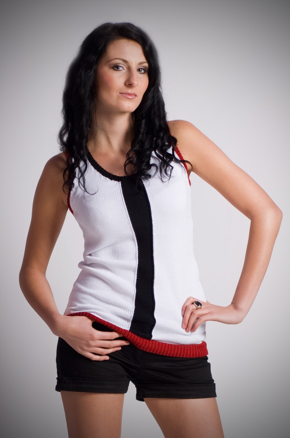 Moderne Pulloverbluse. Zusammensetzung 50% Baumwolle, 50% Acryl.