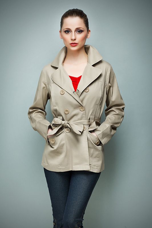Modische Jacke/Mantel mit Knöpfen. An der Taille gebunden. Ungefüttert.
